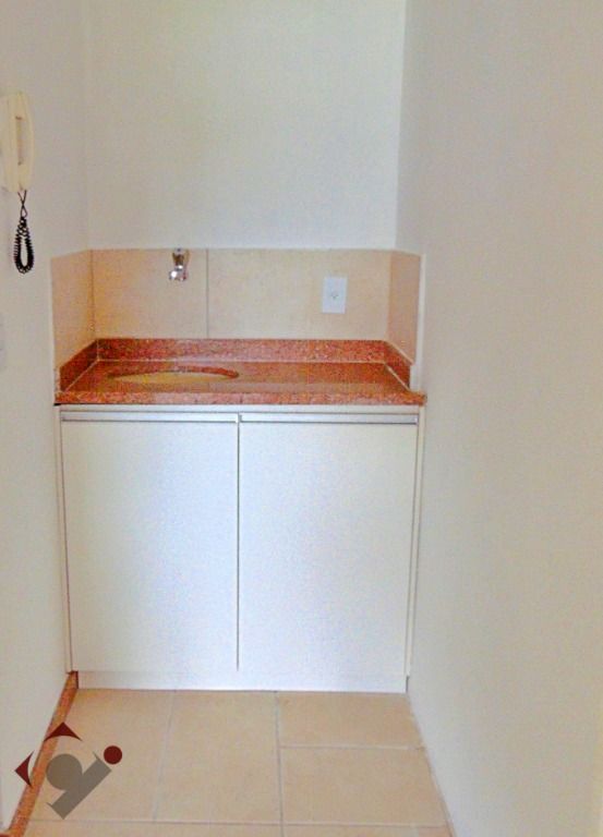 Sala com vão livre sendo 01 banheiro, copa com armário, piso em cerâmica, virada para o comércio.